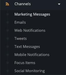 You must set up and configure the Channels before they become available - if you haven’t set up Mobile Notifications or Text Messages, you won’t see it as an option when creating a Marketing Message.
