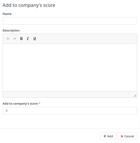 Add to Company’s Score: if a Contact associated with a Company record in Mautic has submitted the Form, you can add or subtract Points to the Company’s overall score. Company scoring in Mautic doesn’t aggregate Points for all its associated Contacts. Any actions that you want to contribute to a Company’s score must be explicitly set. Negative numbers are valid if you want to subtract from a Company’s score based on a Contact submitting a Form. If the Contact isn’t tracked and the Form doesn’t include a field mapped to Company or Company Name - on the Company object - the Company has no Points awarded.