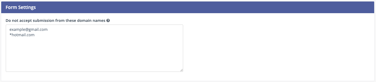 It’s advised to provide a helpful message to display if the visitor tries to use an Email address from a blocked domain, to help them understand what the problem is.