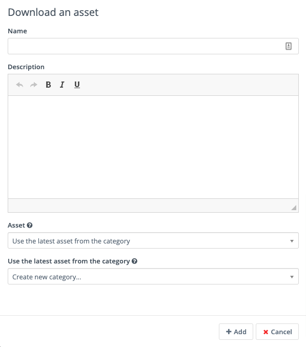 Download an Asset: this option triggers an immediate download of the selected file when the Contact submits the Form. If you use Categories to organize your Assets, you can elect to have them download the most recently published Asset in a selected Category. If you prefer, you can link to a specific Asset.