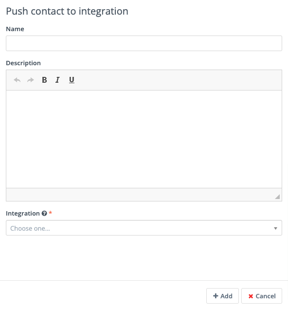 Push Contact to Integration: once a Contact submits the Form, you may need to push them into another piece of software you are using for Contact management - such as a CRM. Ensure that the Plugin you want to use to push the Contacts is already configured and published, then select it in the dropdown field.