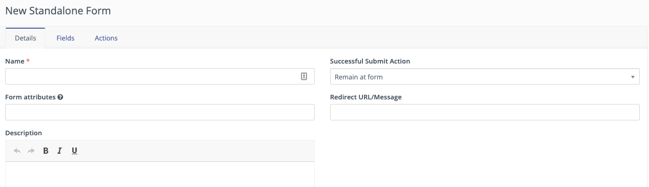 Standalone Form - A more commonly used Form, this allows the execution of many submit actions immediately at the point of Form submission.