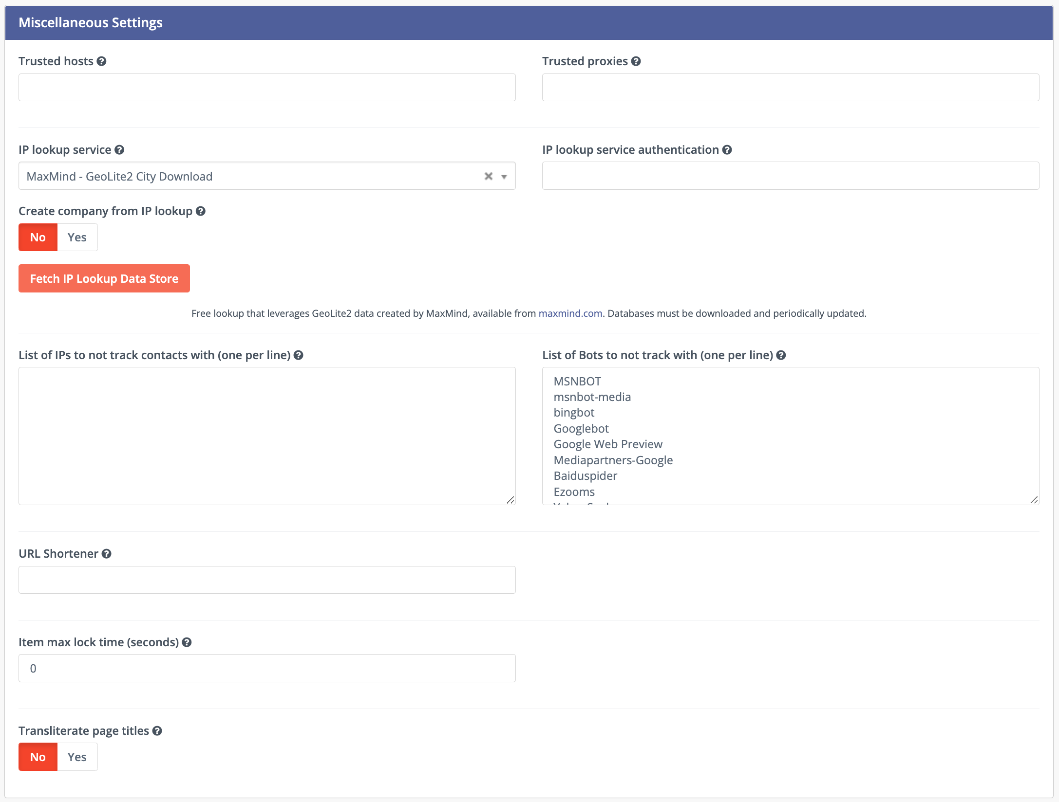 List of known Bots - Mautic has the feature to identify and turn-off tracking for several known bots. To track activity from those bots, remove them from this list. To turn off tracking for other bots, add them here - one per line.