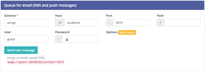 The AMQP transport requires the AMQP PHP extension and a running AMQP service like RabbitMQ and a Composer dependency installed via composer require symfony/amqp-messenger. See the screenshot below for an example of the configuration.