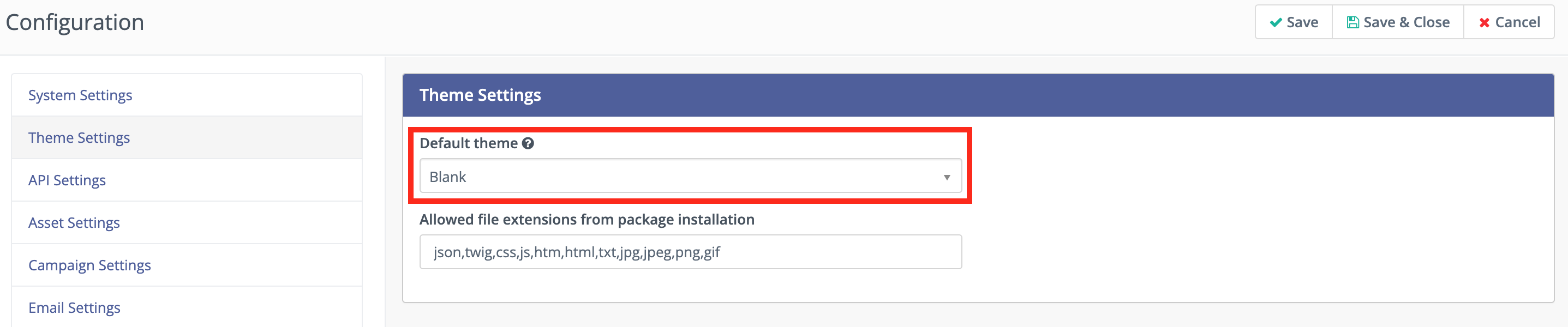 Themes are available to select for Emails and Landing Pages when creating them - this setting pre-selects the Theme chosen by default.