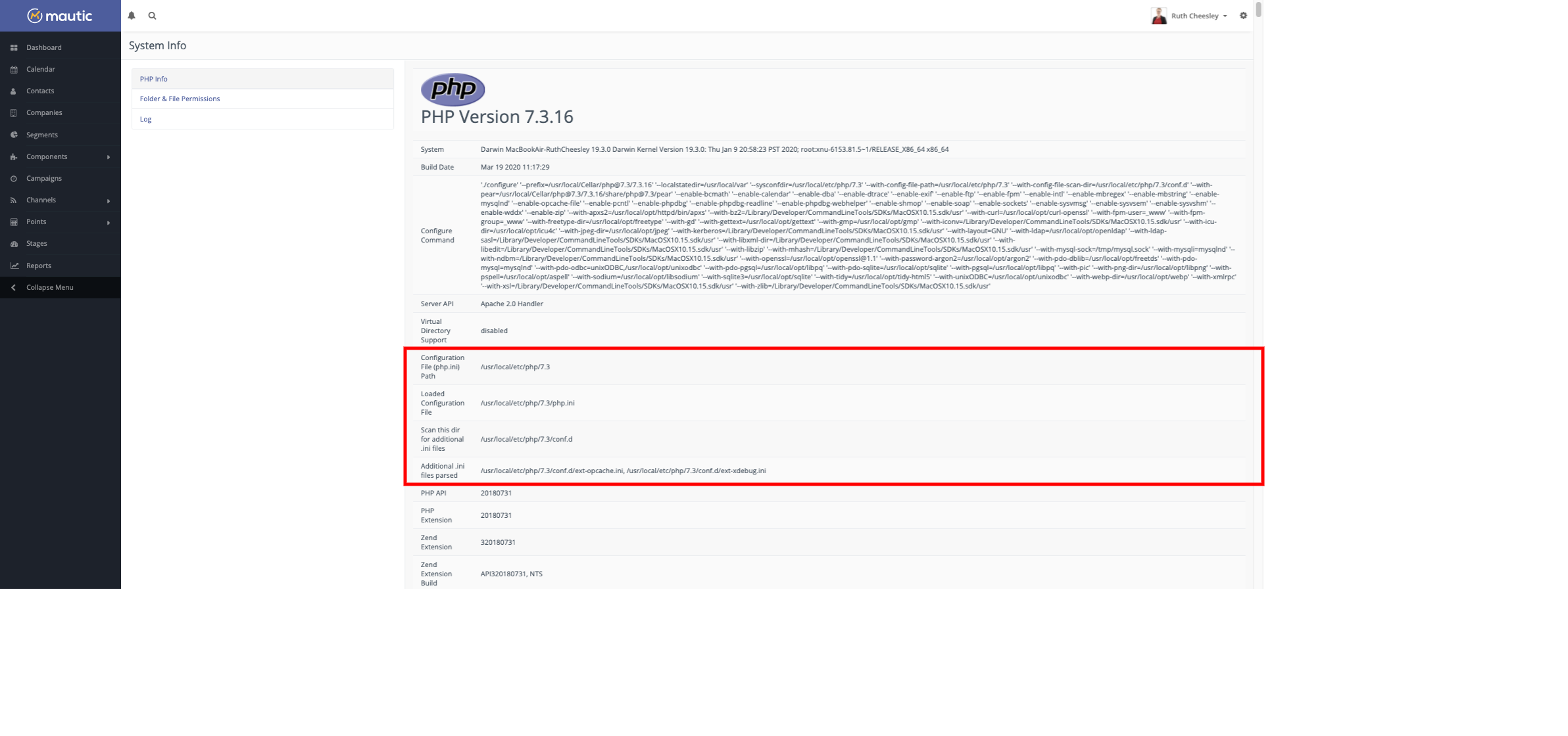 If you have access to your Mautic instance, navigate to Settings > System Info > PHP Info where you can view a file which tells you every configuration setting for PHP that Mautic is using. In particular, the areas outlined in red in the screenshot below give you the paths to the relevant files.